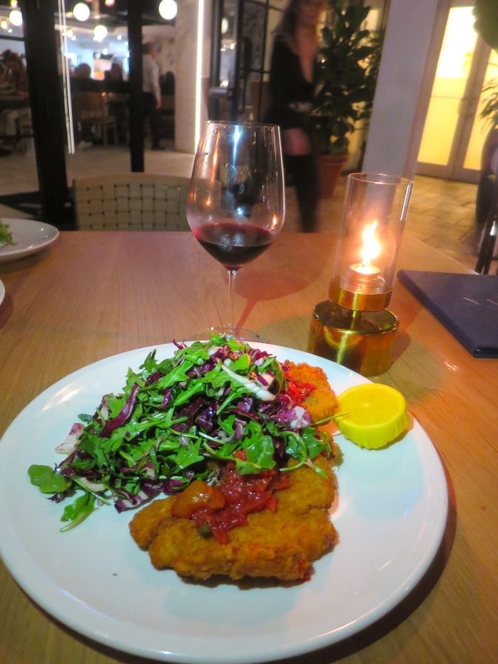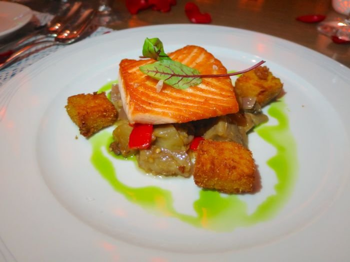 You can choose from a large sampling of dishes from the Med with their accompanying array of spices or you can stay simple and straightforward with classic steak and seafood preparations. The “Spanish Flatbread with chorizo, Goat Cheese, Romesco” and the“Faroe Island Salmon with caponata, Chickpea Panella, and Basil’ are just two examples of the menu items that pleased our palates.