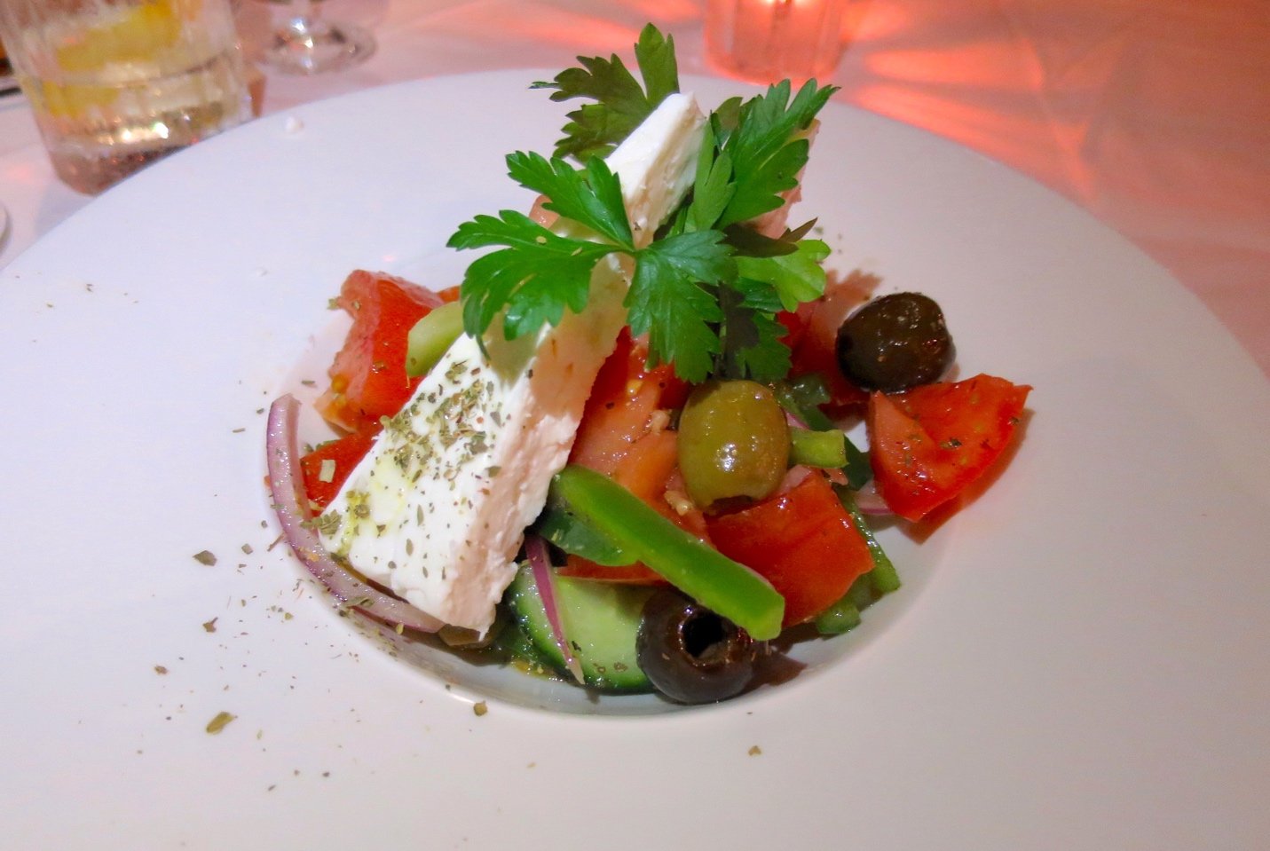 The Selected Field Ripe Tomato Salad -Barrel Aged Feta Wedge with olives dressed in EVO was an authentic nod to the Greek heritage of its owner.