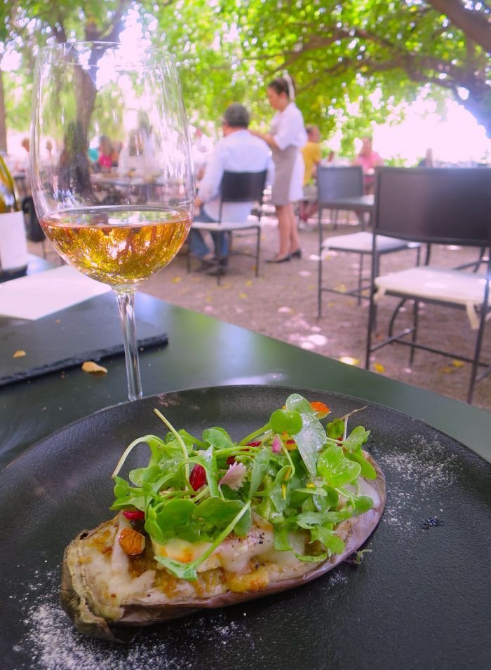 Among the highlights were an eggplant, pear flower and paleggiostarter, a local sea bass with kale, mushrooms and nuts and of course, an impeccably prepared filet of beef. Yes, they have a lively tasting room, but when at Lagarde, treat yourself to lunch among the vines.