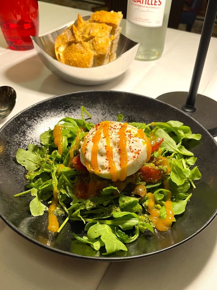Our tomato burrata starter on a bed of rocket was particularly memorable and the seafood risotto was succulent and redolent with the bounty of the sea. The wine server was accommodating in offering us several tastings of Bordeaux wines to acquaint us with several of the region’s finest selections. Regular patrons assured us that no matter what the choices, you will enjoy the experience and lively ambience.
