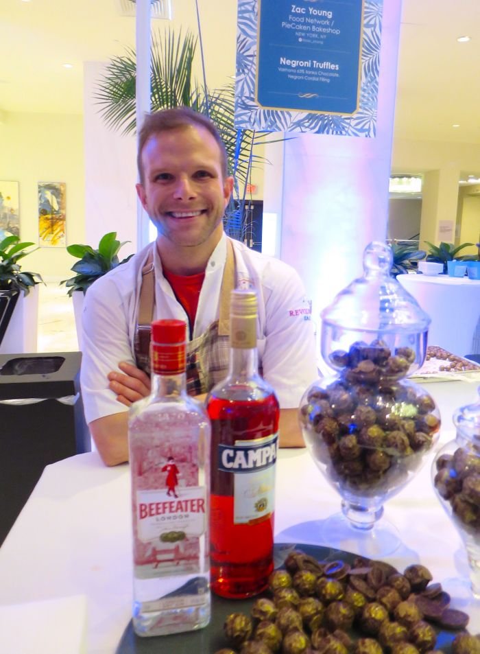 Each chef is presenting a gourmet bite to impress and enhance the stellar line up of wines and champagnes. They succeed in spades and the attendees are the fortunate recipients of their tasteful talent. Also included was a spectacular dessert presentation with boozy Valrhona chocolate “Negroni Truffles” by Zac Young.