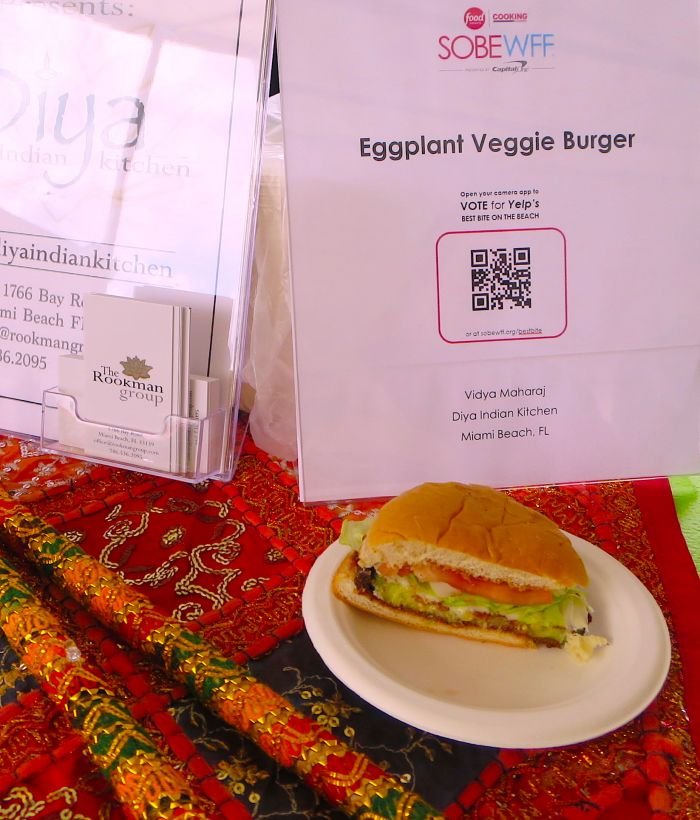 Vidja Maharaj from Diya Indian Kitchen in Miami Beach made our taste buds tingle with his spicy “Eggplant Veggie Burger.”