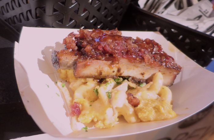 The “Bacon and Brown Sugar Crusted Ribs with Loaded BBQ Mac and Cheese” from Smokey Bones in Aventura, Florida sent us to hog heaven. Live country music and spirited libations made this evening on the sand a standout event.